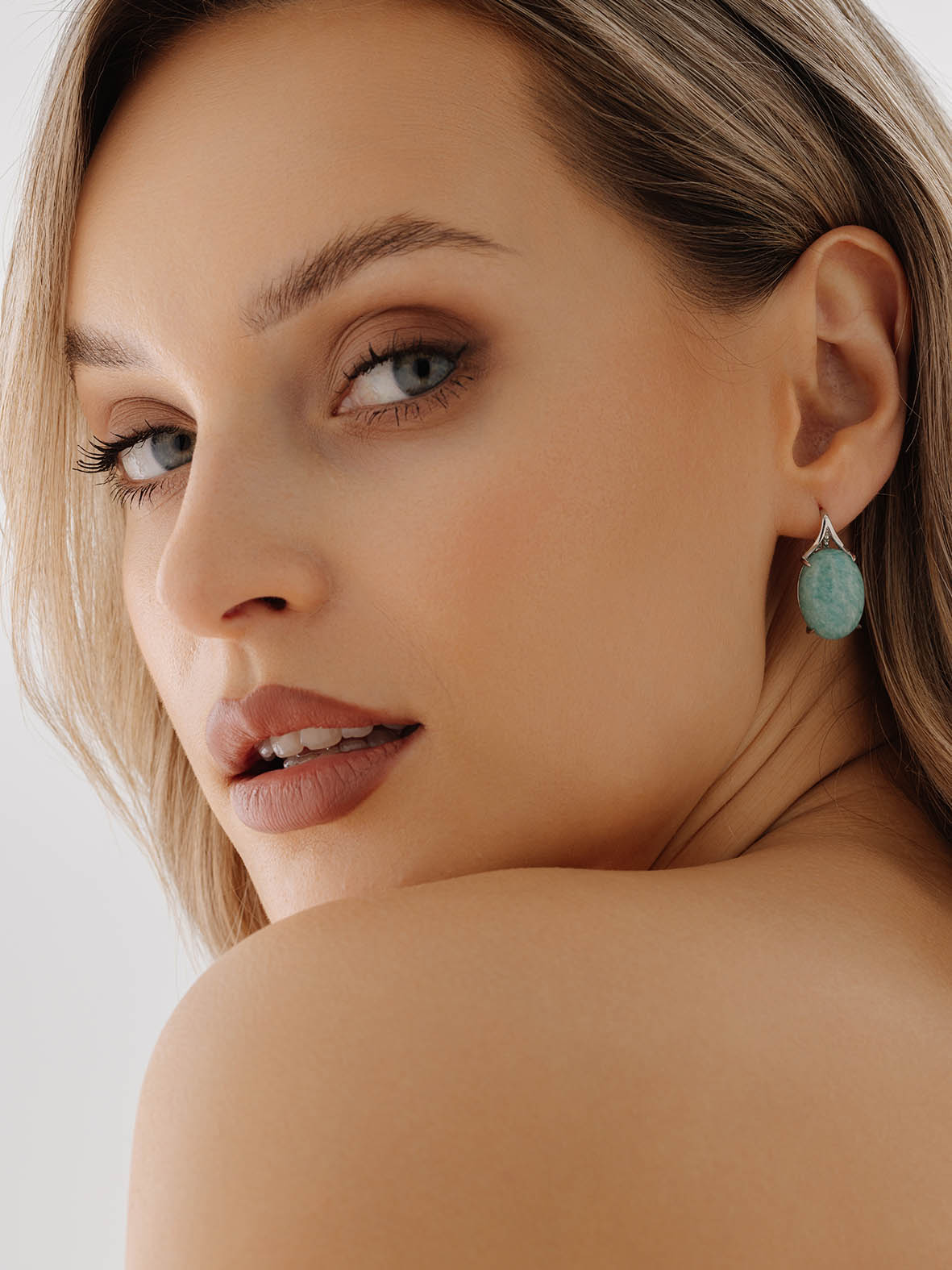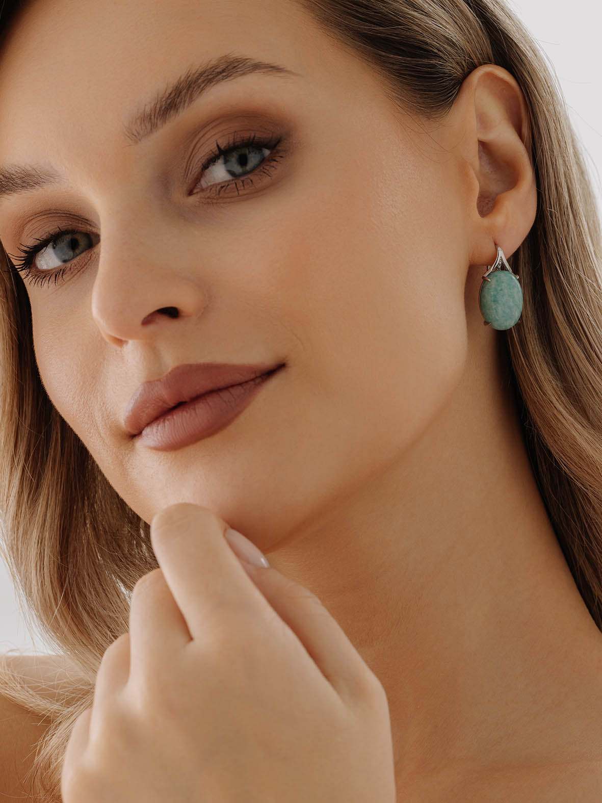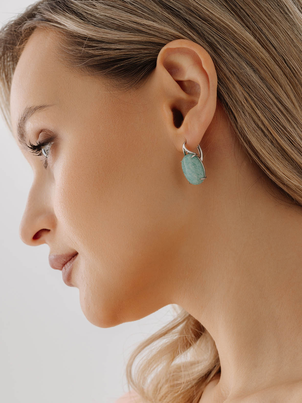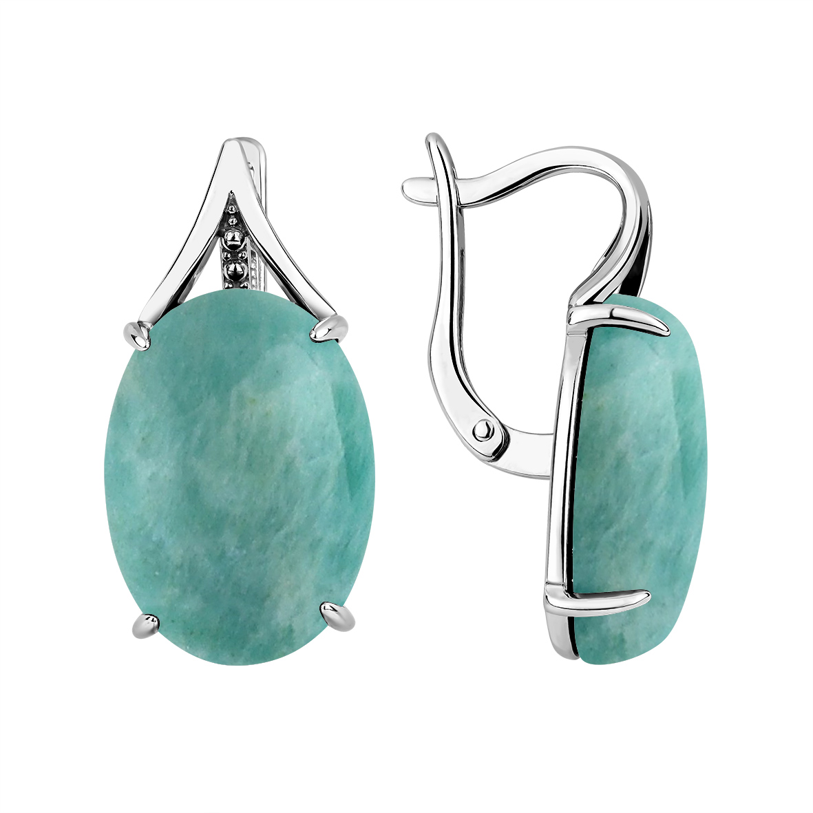 Серьги для женщин из серебра 925 пробы с амазонитами из коллекции Уральские самоцветы артикул 2340375955 от компании KRASNOE