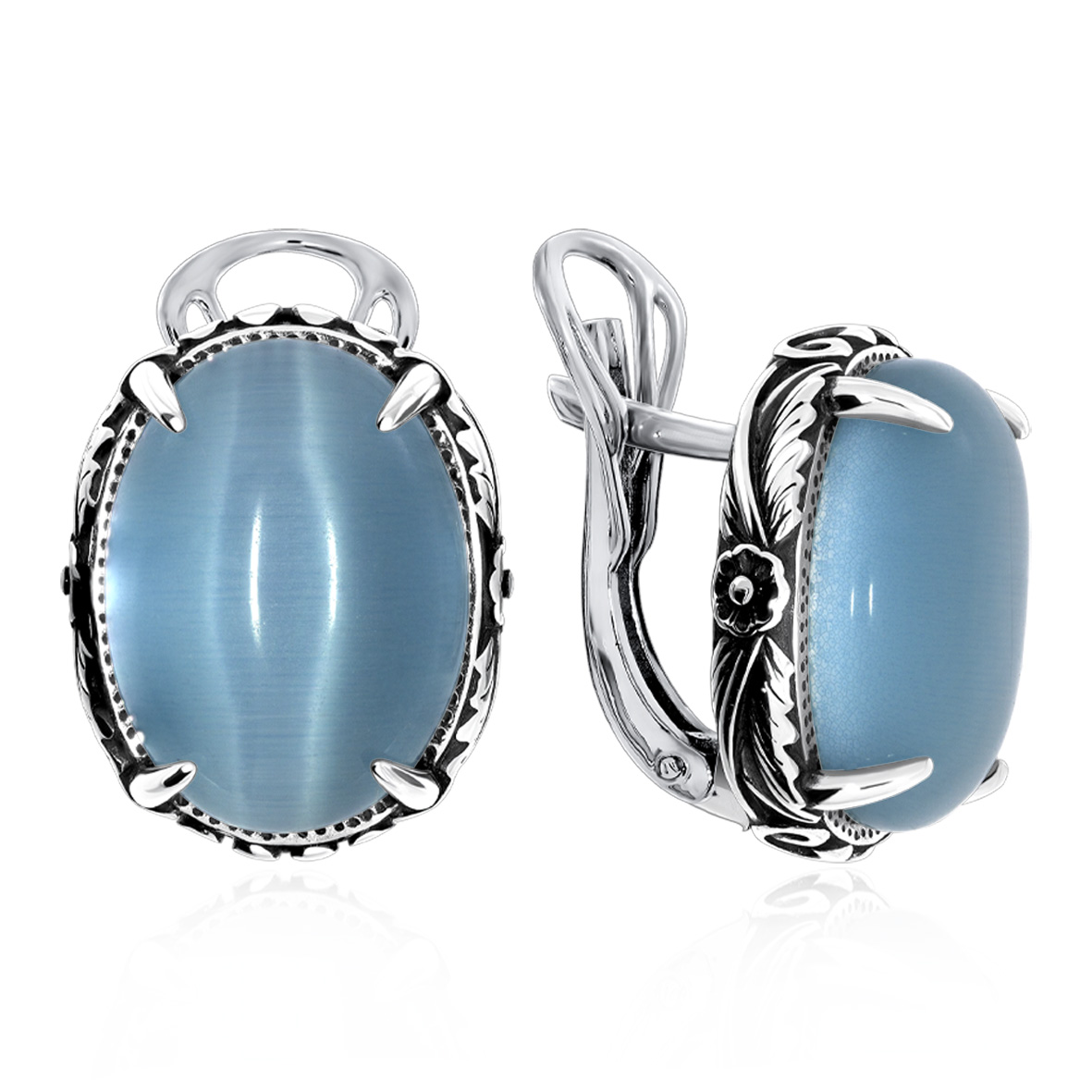 Серьги для женщин из серебра 925 пробы с имитацией кошачьего глаза из коллекции Flowers (рабочее название) артикул 2310265714-70 от компании KRASNOE