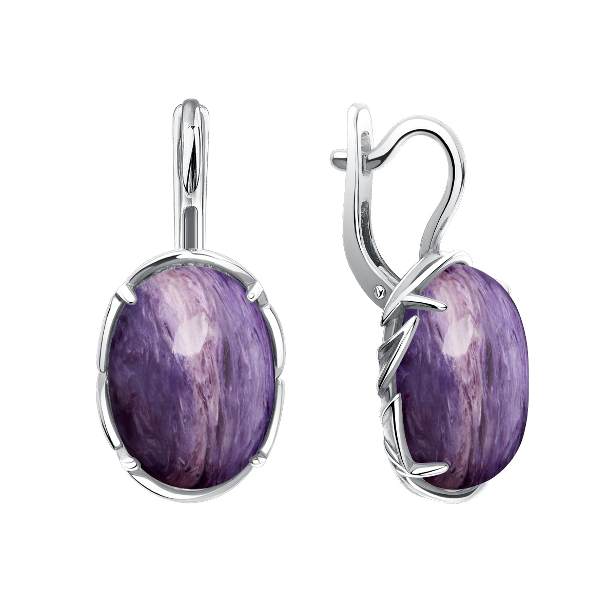 Серьги для женщин из серебра 925 пробы с чароитами из коллекции Уральские самоцветы артикул 2340465707 от компании KRASNOE