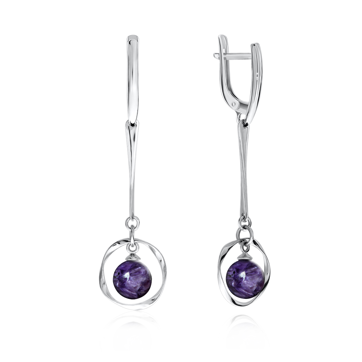 Серьги для женщин из серебра 925 пробы с чароитами из коллекции Magic stick артикул 2340460738 от компании KRASNOE