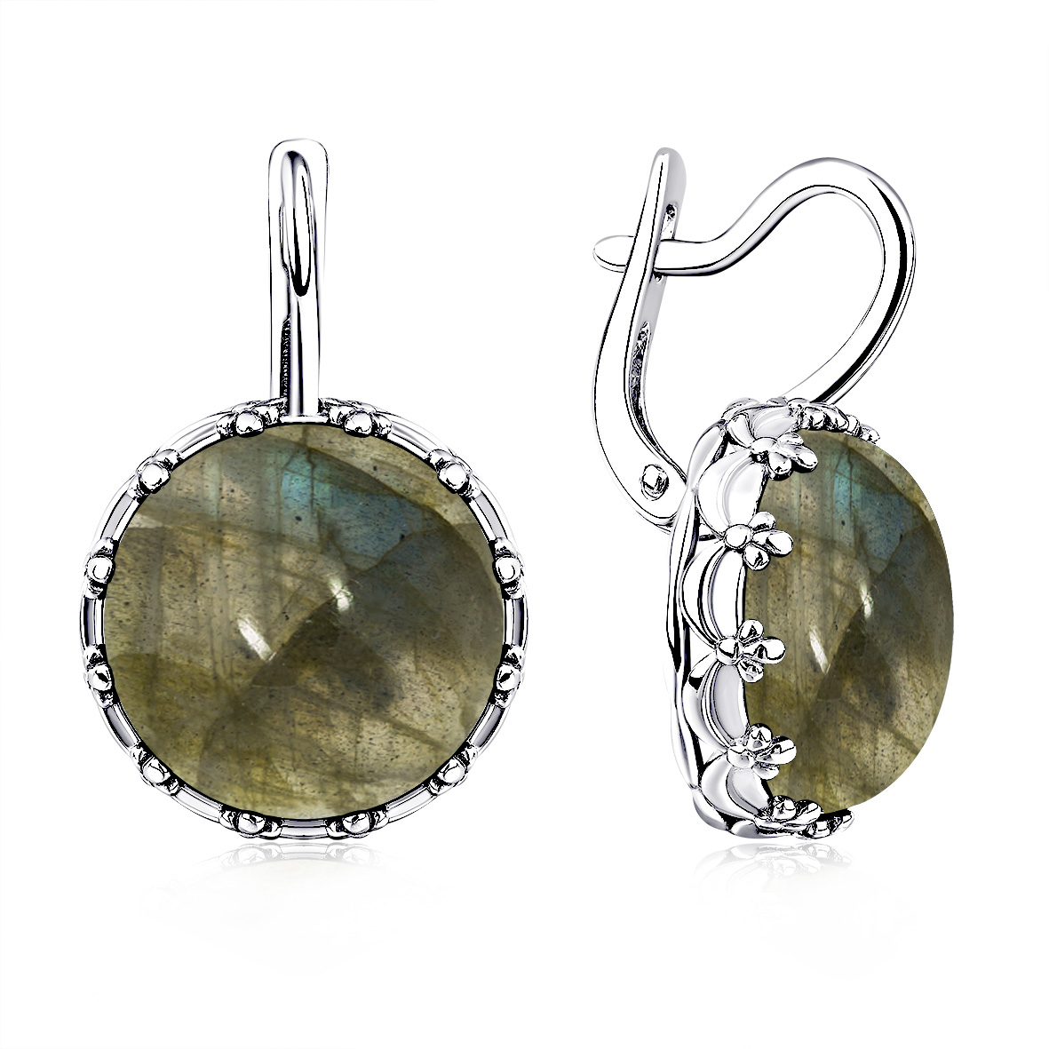 Серьги для женщин из серебра 925 пробы с лабрадоритами из коллекции Уральские самоцветы артикул 2340Л01869 от компании KRASNOE