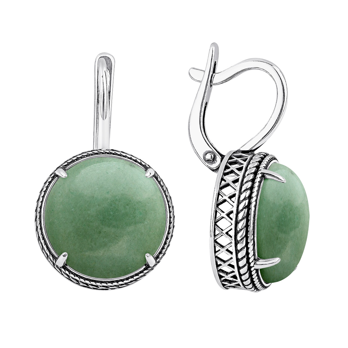 Серьги для женщин из серебра 925 пробы с авантюринами из коллекции Уральские самоцветы артикул 2310365179-1 от компании KRASNOE