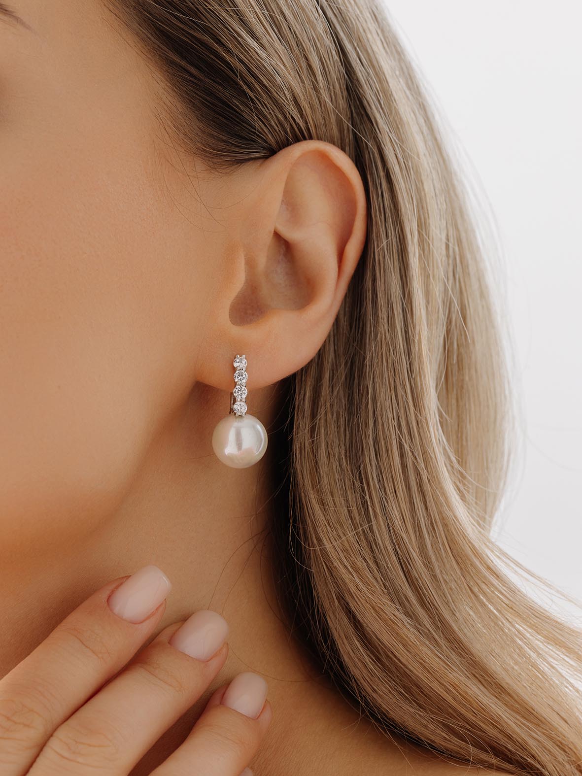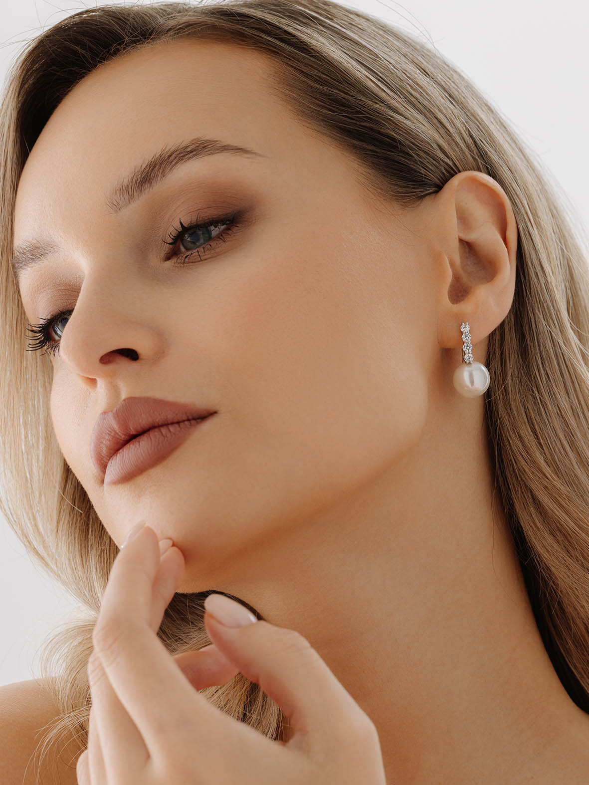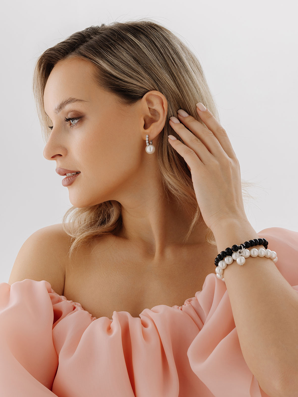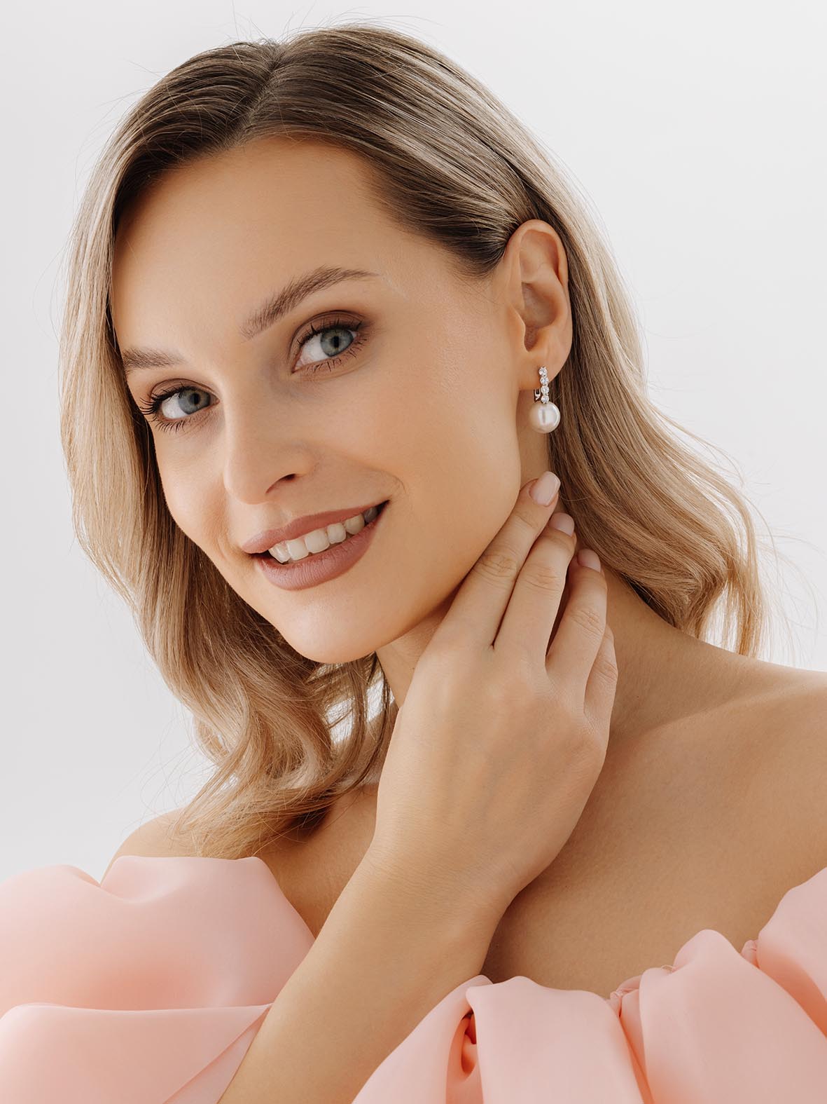 Серьги для женщин из серебра 925 пробы с жемчугами,фианитами из коллекции Шанель артикул 2340241576 от компании KRASNOE