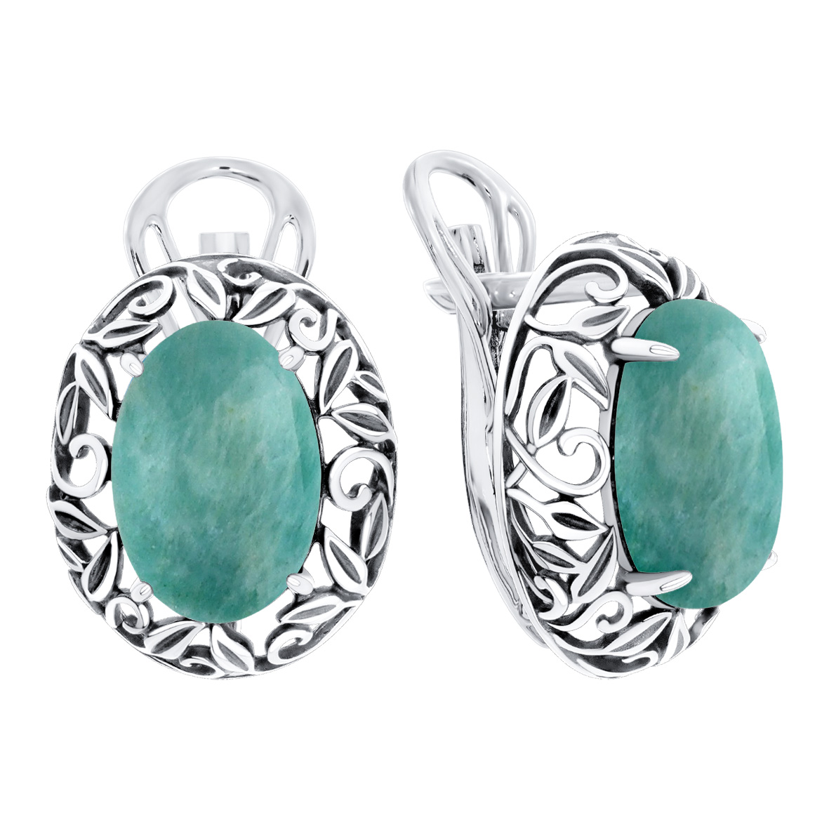 Серьги для женщин из серебра 925 пробы с амазонитами из коллекции Flowers (рабочее название) артикул 2310375727 от компании KRASNOE