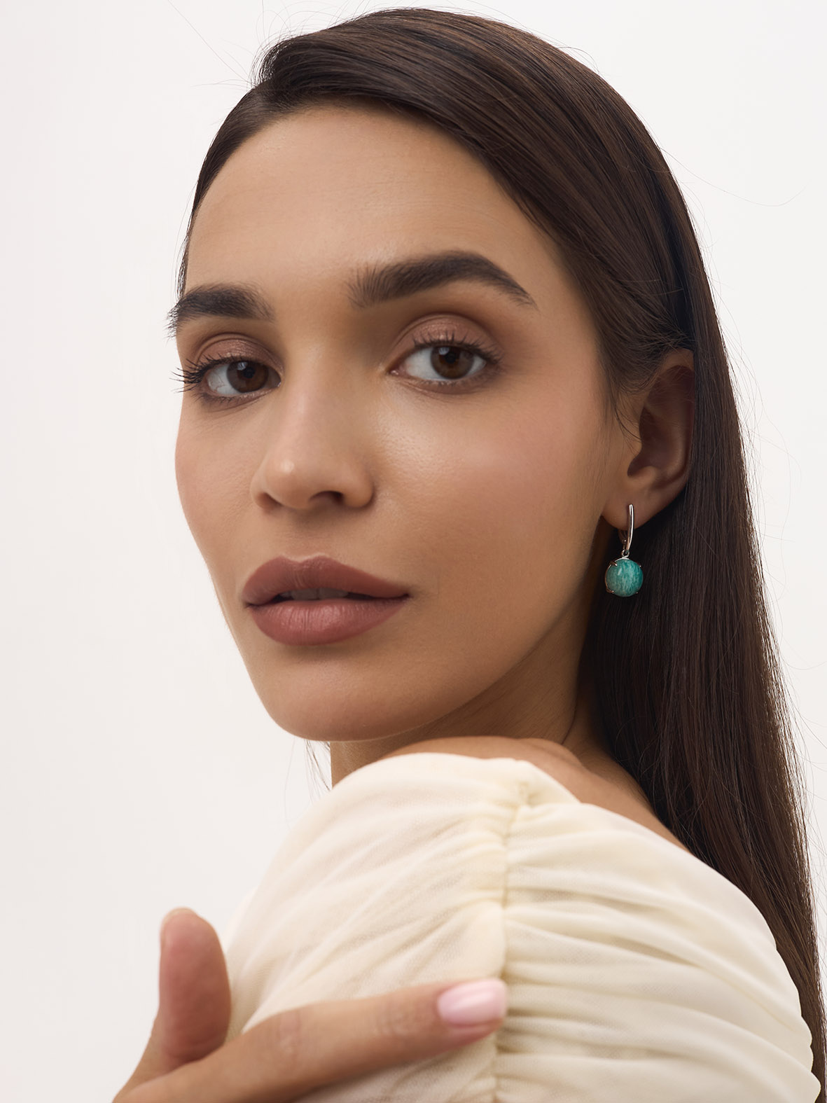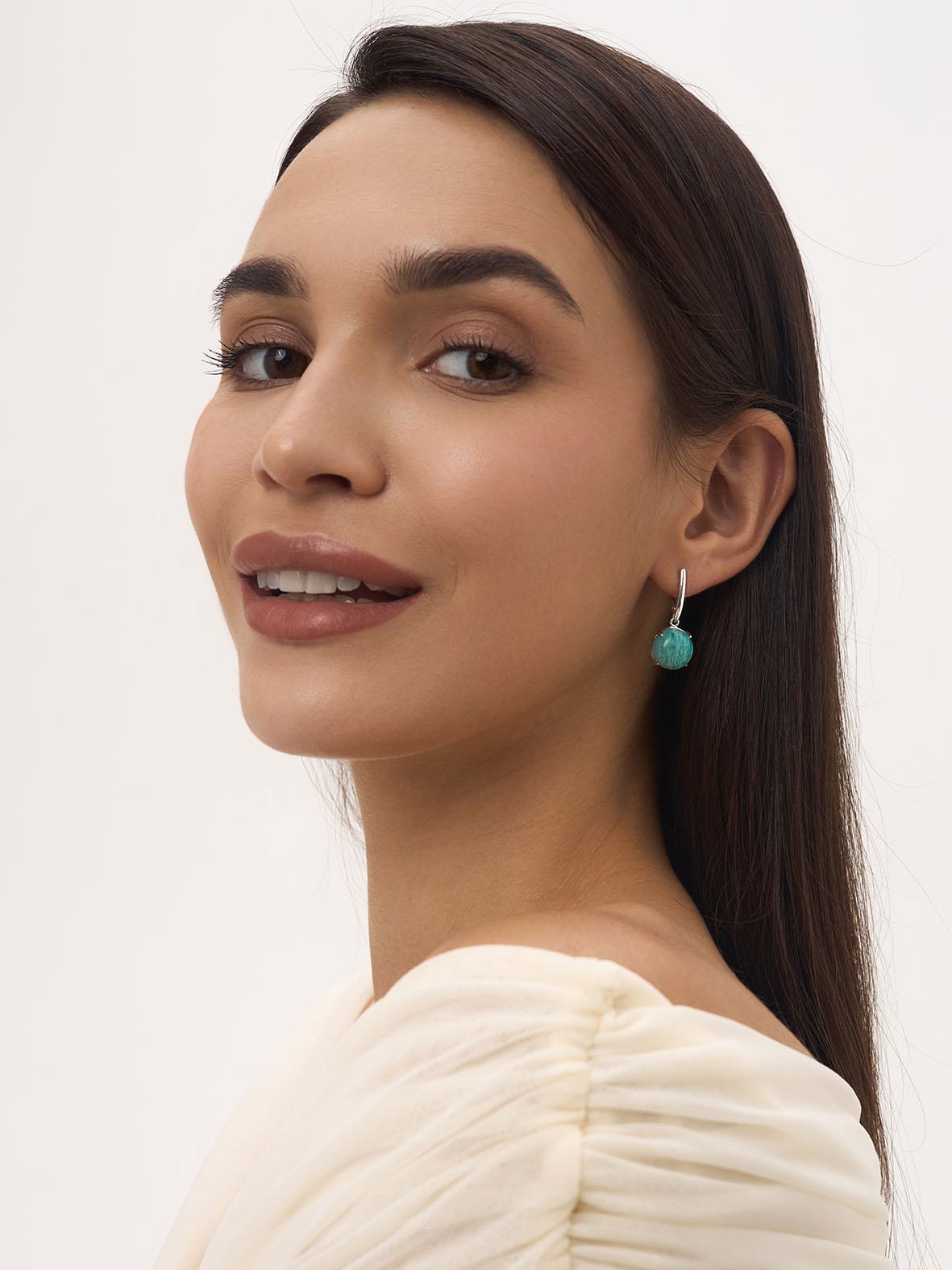 Серьги для женщин из серебра 925 пробы с амазонитами из коллекции Уральские самоцветы артикул 2340372311 от компании KRASNOE