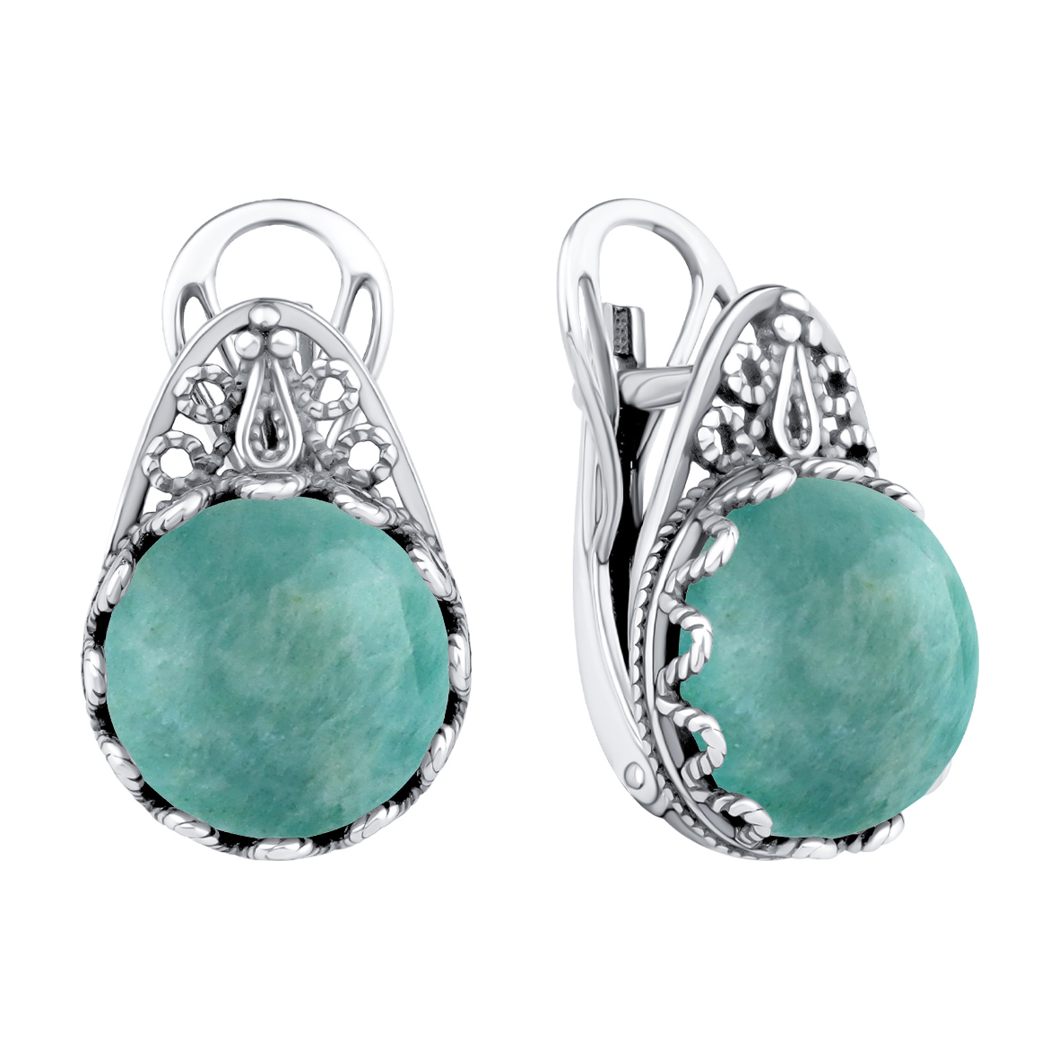 Серьги для женщин из серебра 925 пробы с амазонитами из коллекции Филигранная артикул 2310375777 от компании KRASNOE