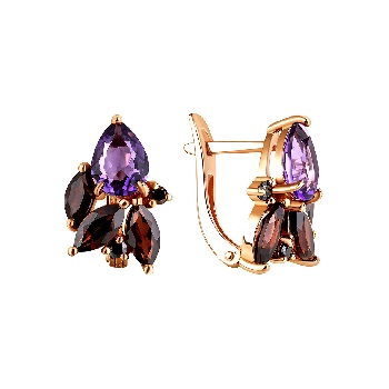 Серьги для женщин из серебра 925 пробы с аметистами,фианитами,,гранатами артикул 2320871960-97 от компании KRASNOE