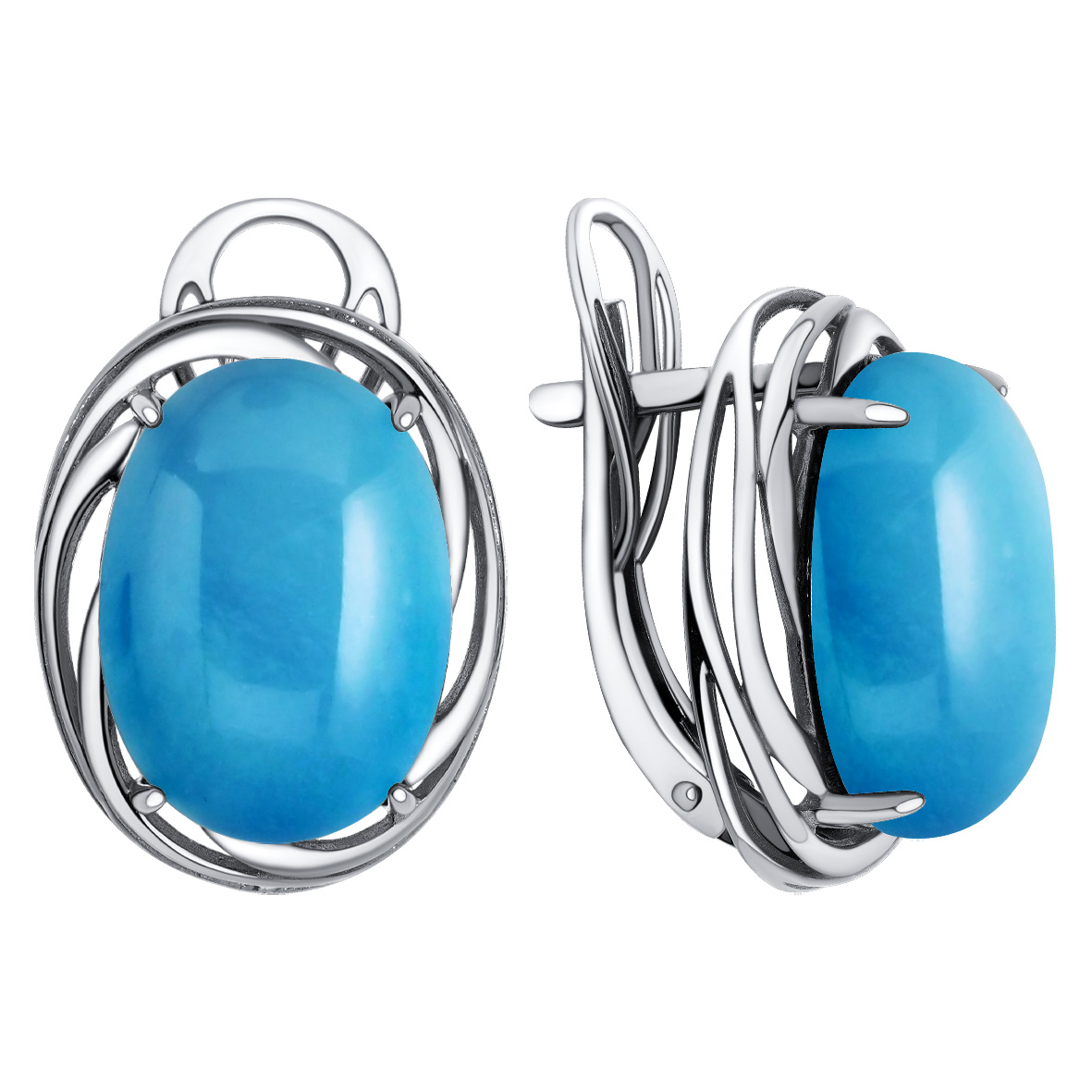 Серьги для женщин из серебра 925 пробы с бирюзой из коллекции Уральские самоцветы артикул 2340Б25740 от компании KRASNOE