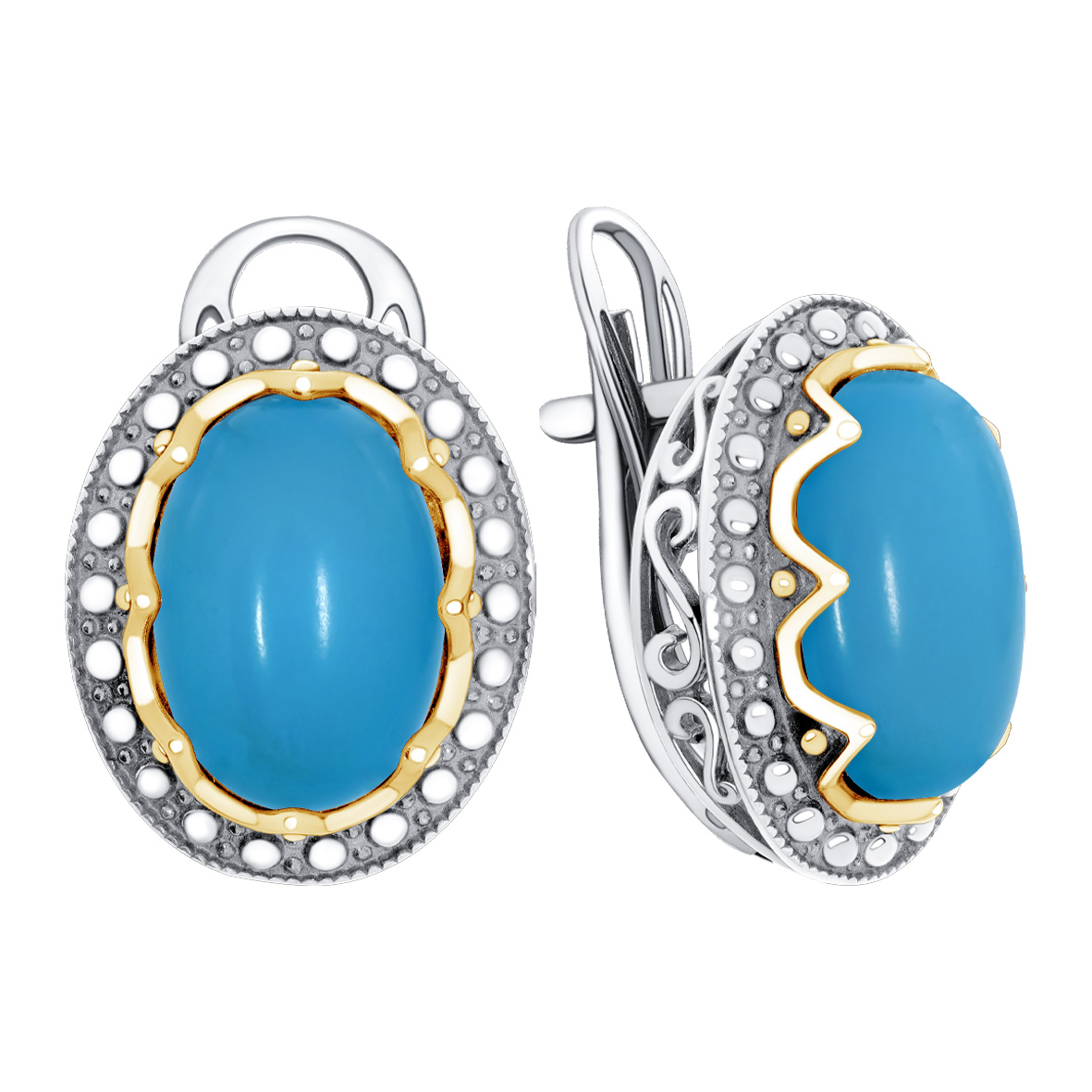 Серьги для женщин из серебра 925 пробы с бирюзой из коллекции Династия артикул 2317Б25969 от компании KRASNOE