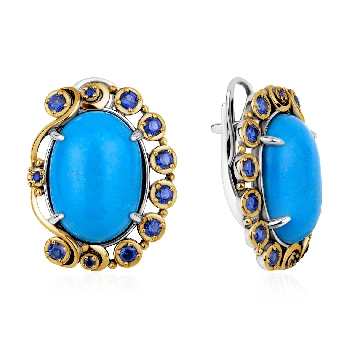 Серьги для женщин из серебра 925 пробы с бирюзой,ситаллами артикул 2317Б25324 от компании KRASNOE