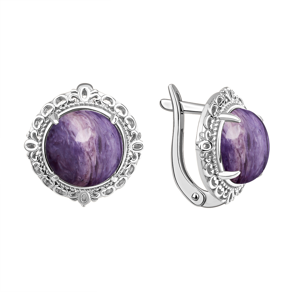 Серьги для женщин из серебра 925 пробы с чароитами артикул 2340461994 от компании KRASNOE