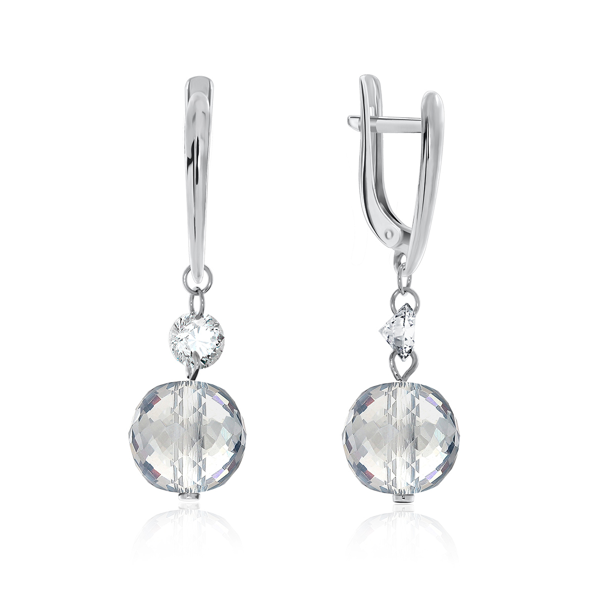 Серьги для женщин из серебра 925 пробы с фианитами,горным хрусталем из коллекции Невесомость артикул 2340520625 от компании KRASNOE