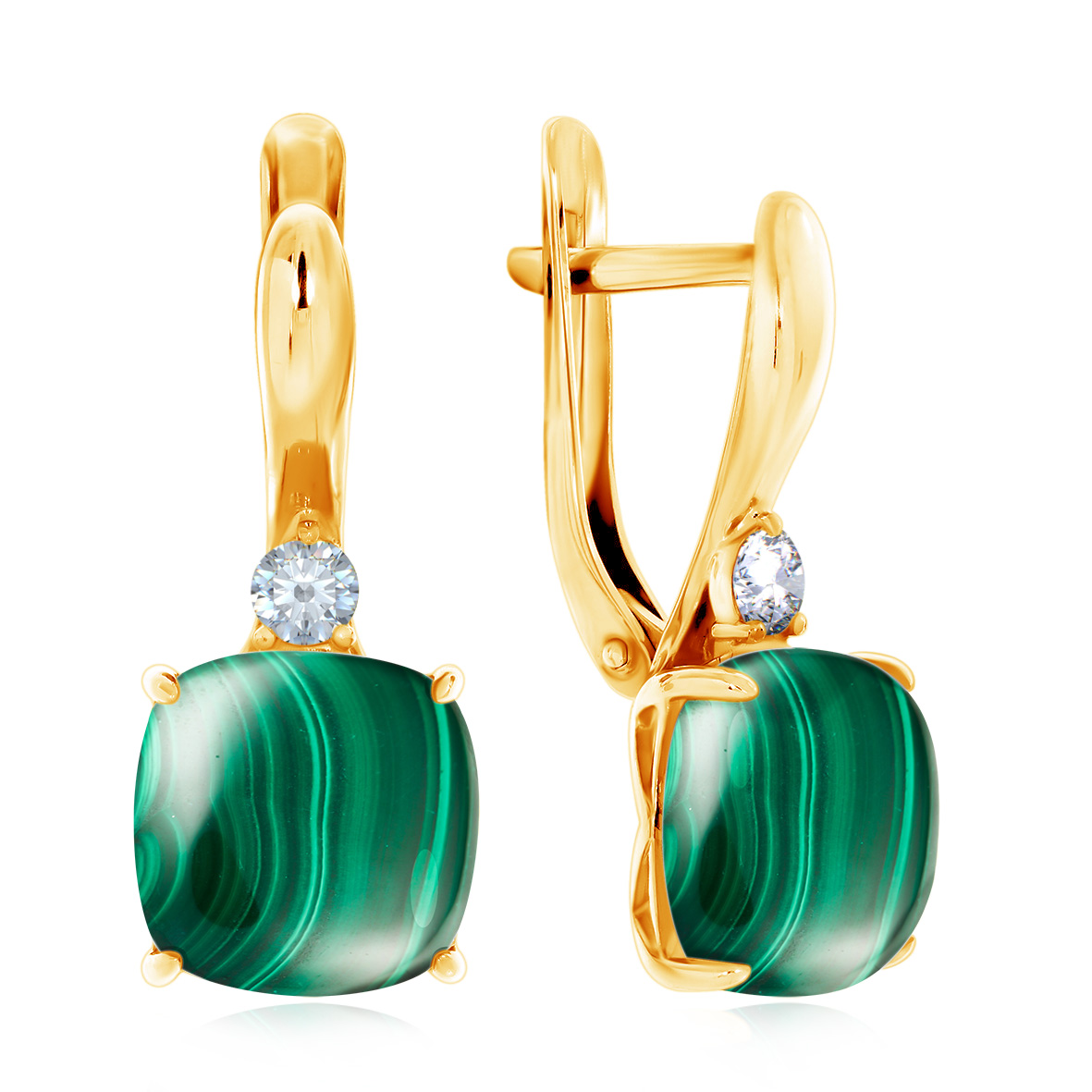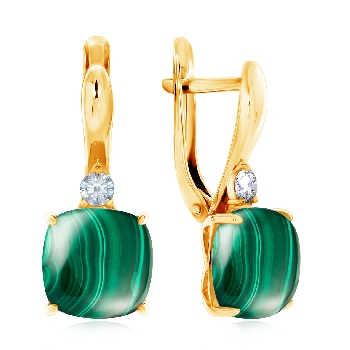 Серьги для женщин из серебра 925 пробы с фианитами,малахитами из коллекции Уральские самоцветы артикул 2320380380 от компании KRASNOE