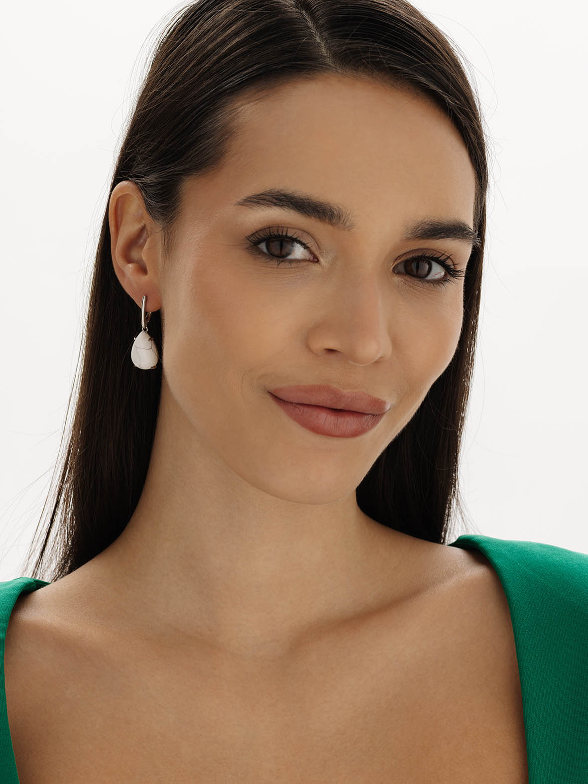 Серьги для женщин из серебра 925 пробы с кахолонгами из коллекции Уральские самоцветы артикул 2340К00500 от компании KRASNOE
