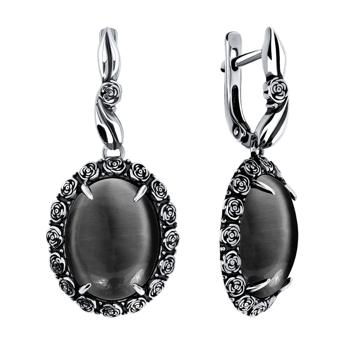Серьги для женщин из серебра 925 пробы с кошачий глазами из коллекции Flowers (рабочее название) артикул 2310265173-21 от компании KRASNOE