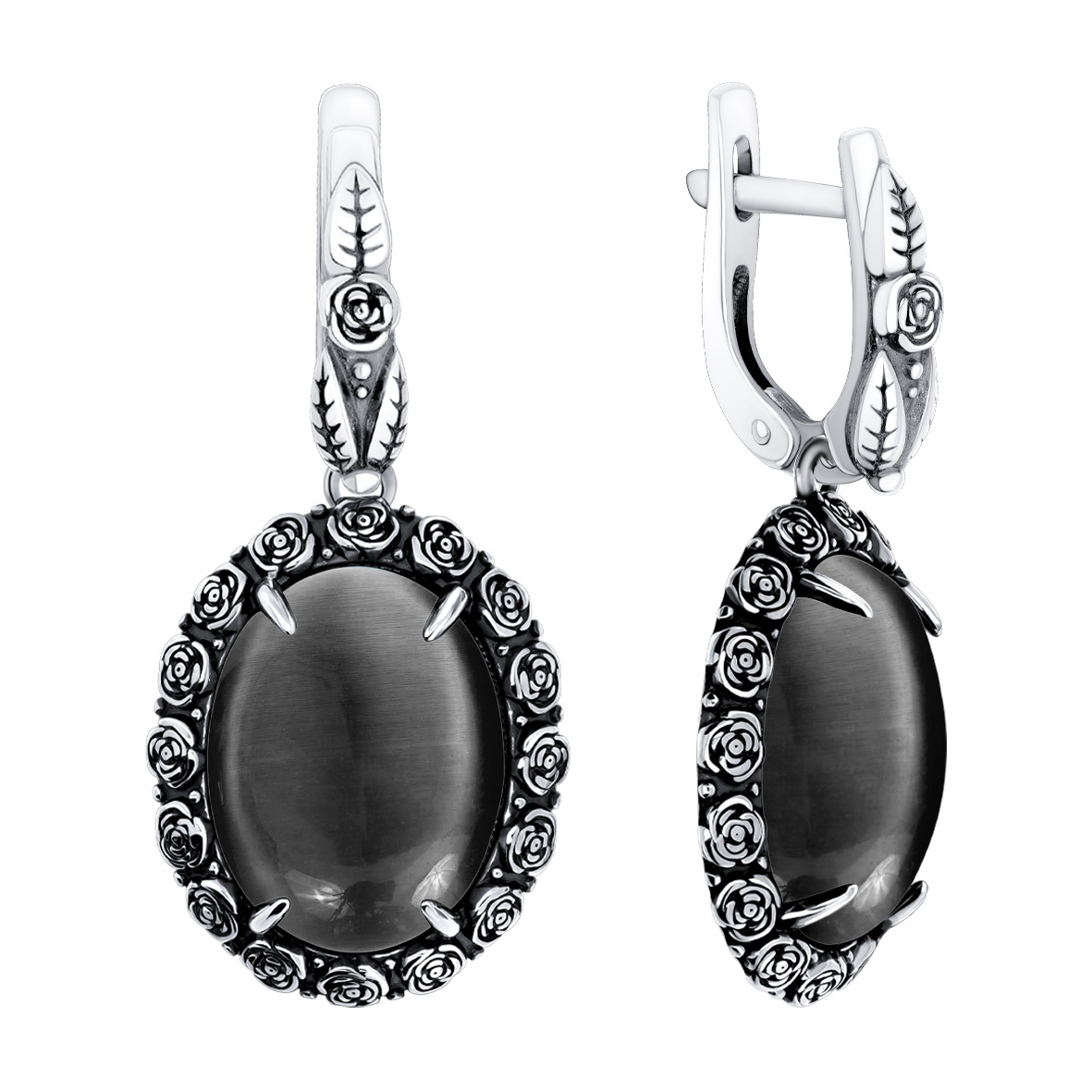 Серьги для женщин из серебра 925 пробы с кошачий глазами из коллекции Flowers артикул 2310265173-1-21 от компании KRASNOE