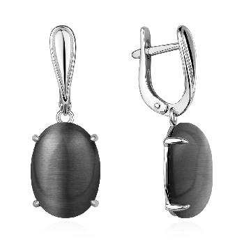 Серьги для женщин из серебра 925 пробы с кошачий глазами из коллекции Уральские самоцветы артикул 2340265893-21 от компании KRASNOE