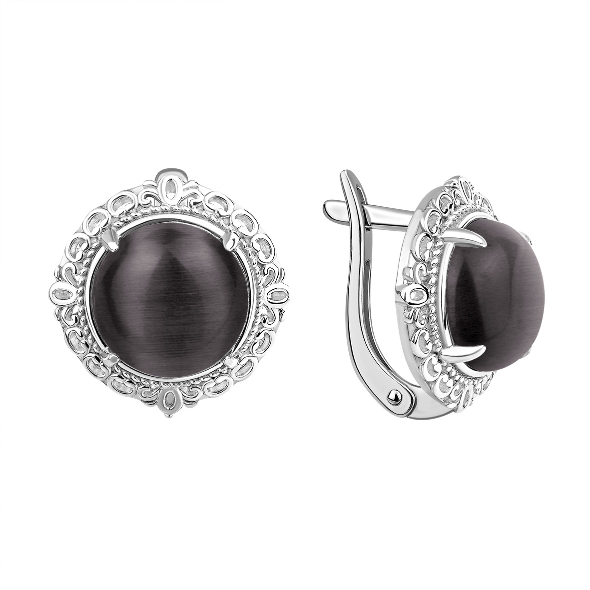 Серьги для женщин из серебра 925 пробы с кошачий глазами из коллекции Уральские самоцветы артикул 2340261994 -21 от компании KRASNOE