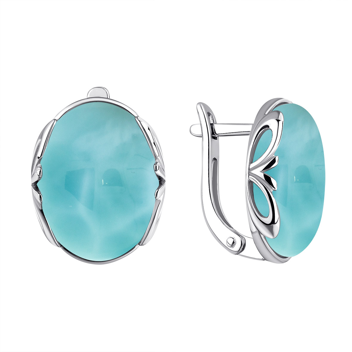 Серьги для женщин из серебра 925 пробы с ларимарами из коллекции Уральские самоцветы артикул 2340Л11859 от компании KRASNOE