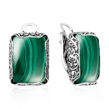 Серьги для женщин из серебра 925 пробы с малахитами из коллекции Уральские самоцветы артикул 2310385160 от компании KRASNOE