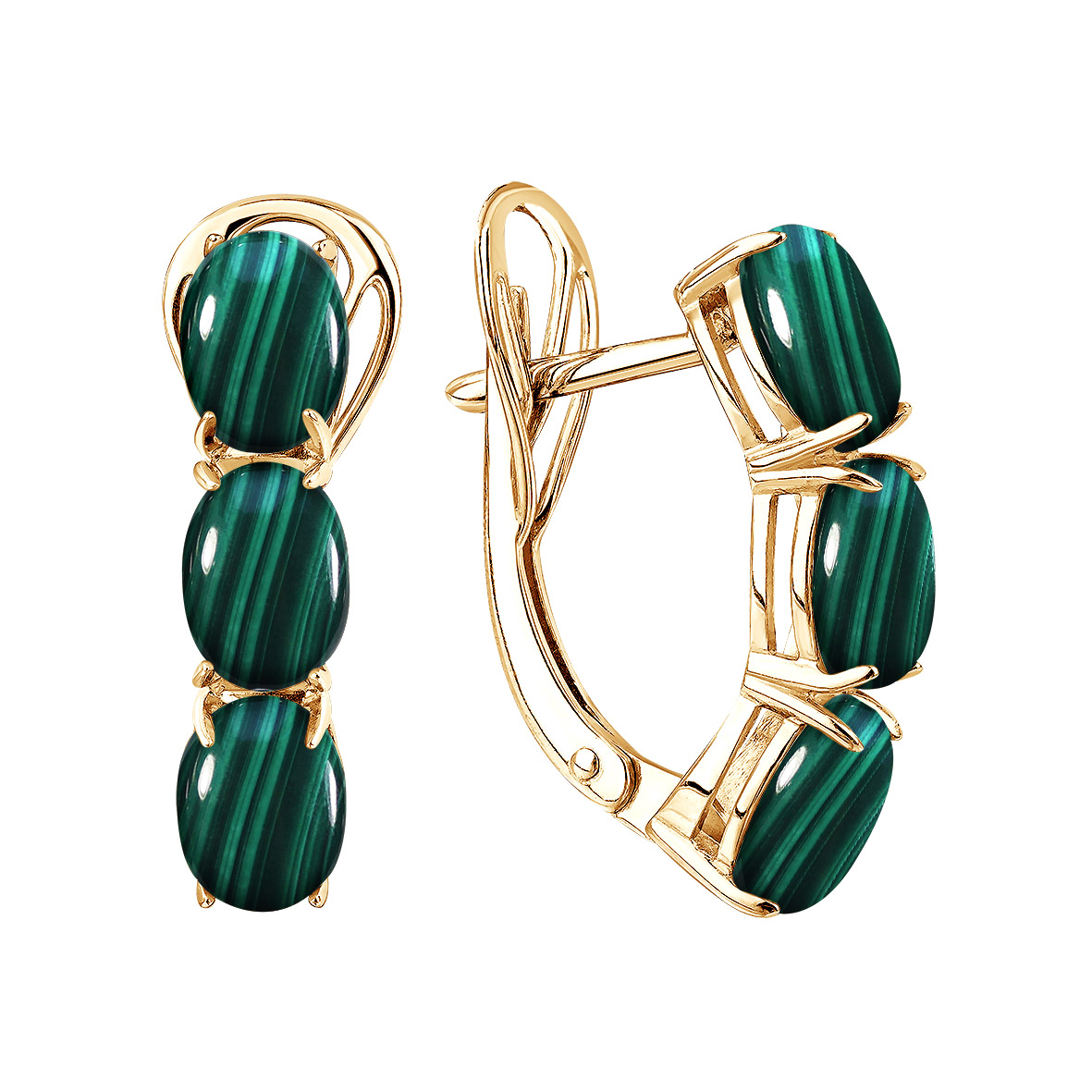 Серьги для женщин из серебра 925 пробы с малахитами из коллекции Уральские самоцветы артикул 2320385159 от компании KRASNOE