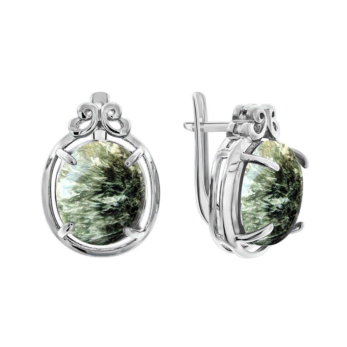 Серьги для женщин из серебра 925 пробы с серафинитами из коллекции Уральские самоцветы артикул 2340920111 от компании KRASNOE