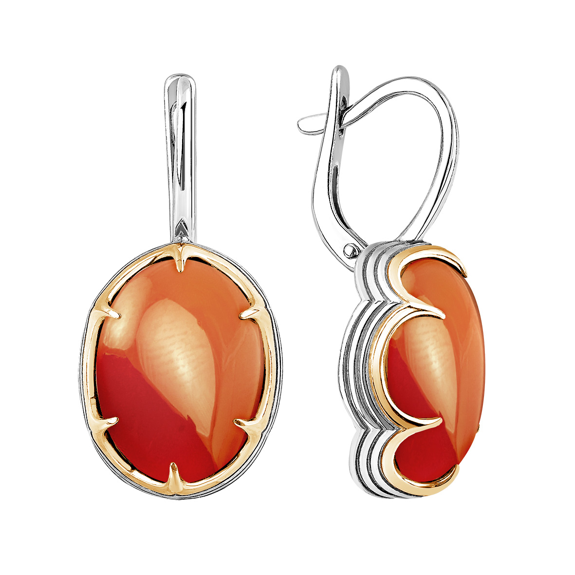 Серьги для женщин из серебра 925 пробы с сердоликами из коллекции Уральские самоцветы артикул 2317685175 от компании KRASNOE