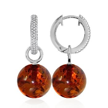Серьги для женщин из серебра 925 пробы с янтарём,фианитами из коллекции Шанель артикул 2340481184л от компании KRASNOE