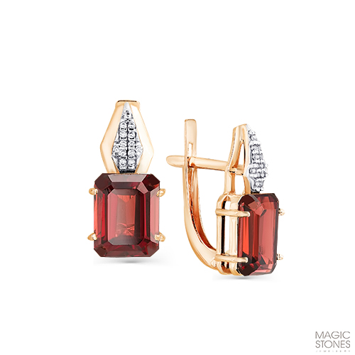Серьги для женщин из золота 585 пробы с гранат,фианитыом артикул 02-2-595-0301-011