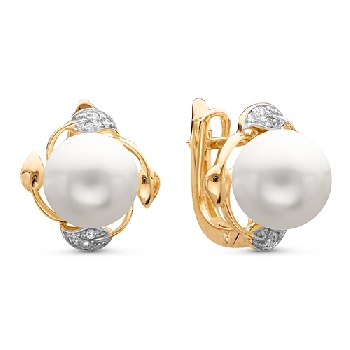Серьги для женщин из золота 585 пробы с жемчуг , фианитыом артикул Z2-9232