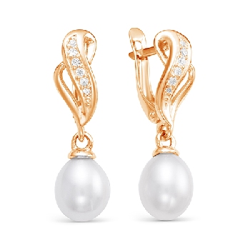 Серьги для женщин из золота 585 пробы с жемчуг , фианитыом артикул Z2-9652