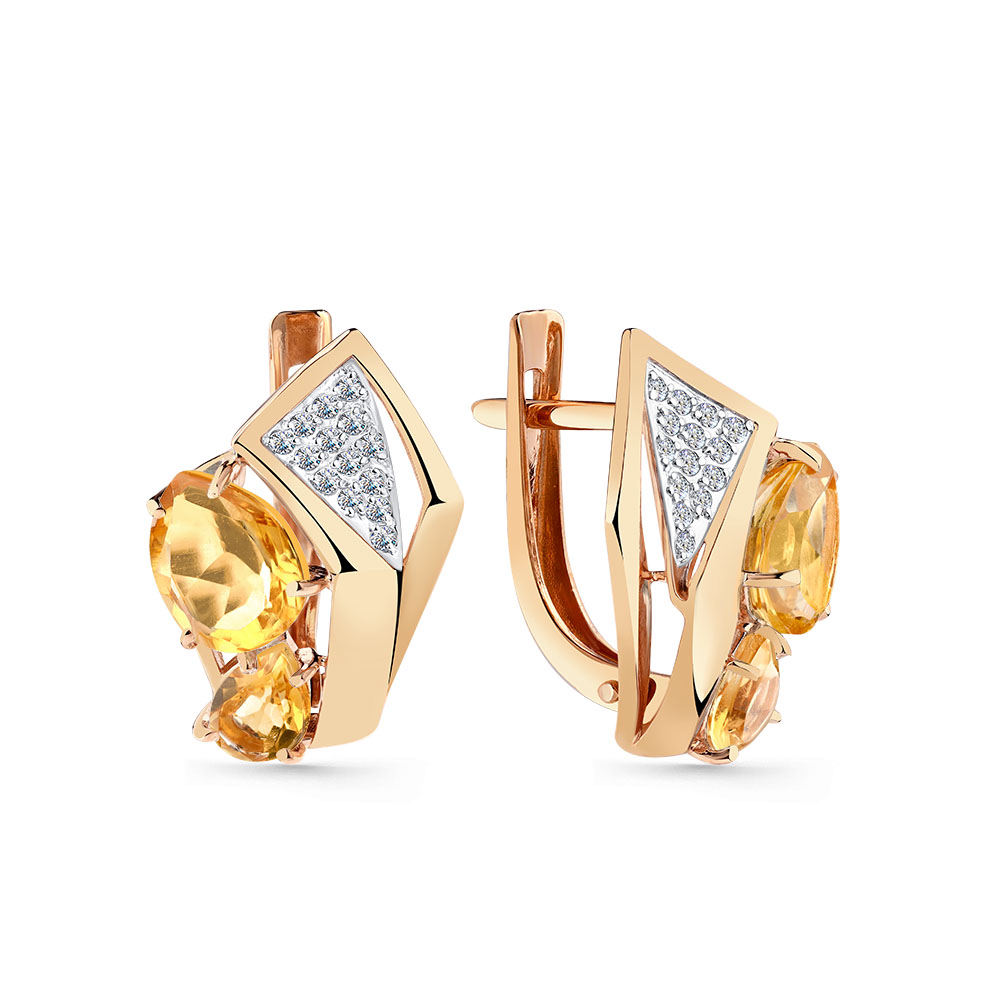 Серьги для женщин из золота 585 пробы с цитрином артикул 02-3-515-1001-011