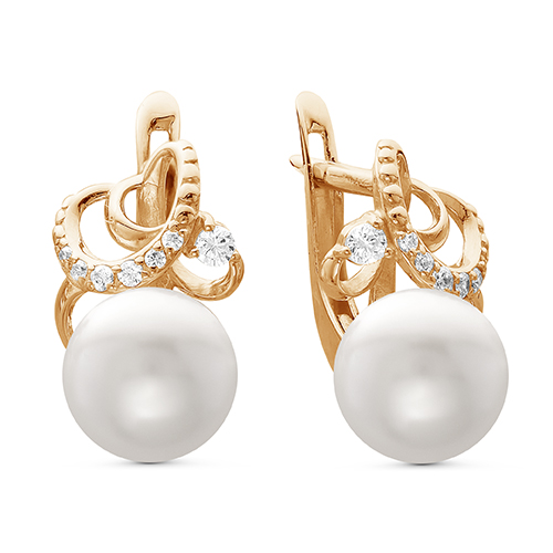 Серьги для женщин из золота 585 пробы с жемчугом артикул Z2-9389