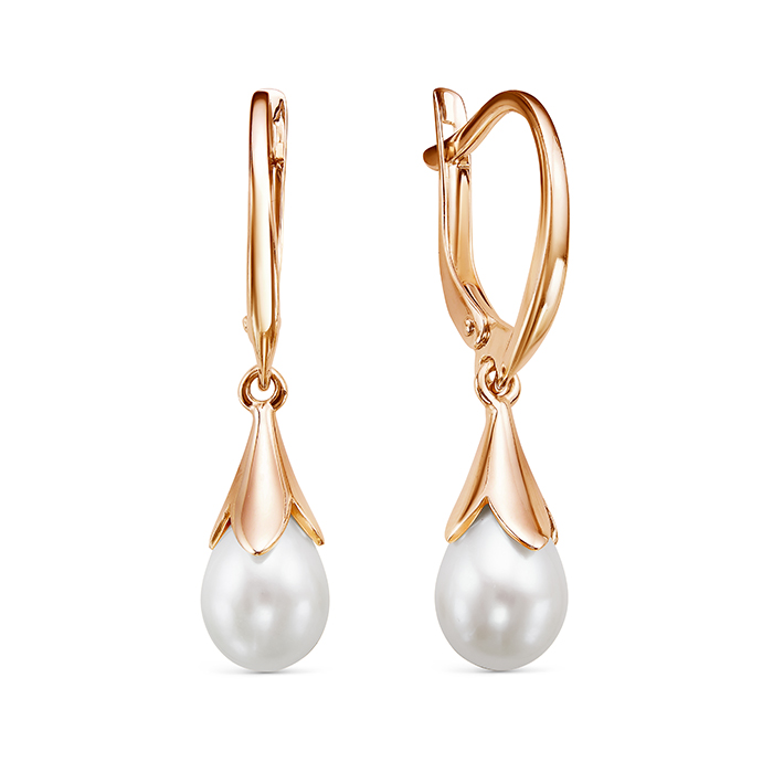 Серьги для женщин из золота 585 пробы с жемчугом артикул Z2-10573