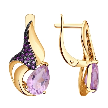 Серьги для женщин из золота 585 пробы с аметистом артикул 724812