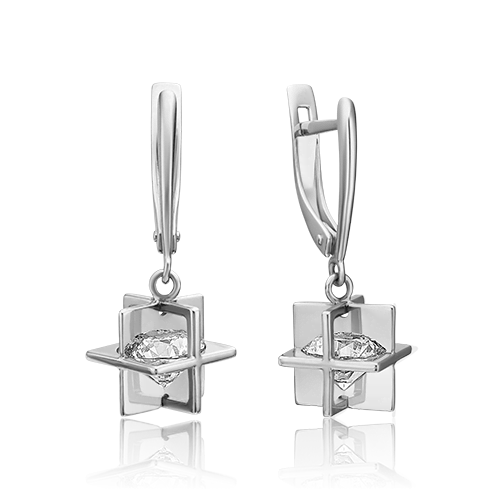 Серьги для женщин из золота 585 пробы с фианитом артикул 02-4464-00-501-1120-67