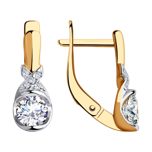 Серьги для женщин из золота 585 пробы с фианитом артикул 028460