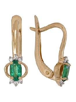 Серьги для женщин из золота 585 пробы с изумрудом артикул 1910212327 от компании Алмаз-Холдинг