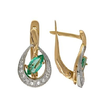Серьги для женщин из золота 585 пробы с изумрудом артикул 22434162 от компании Алмаз-Холдинг