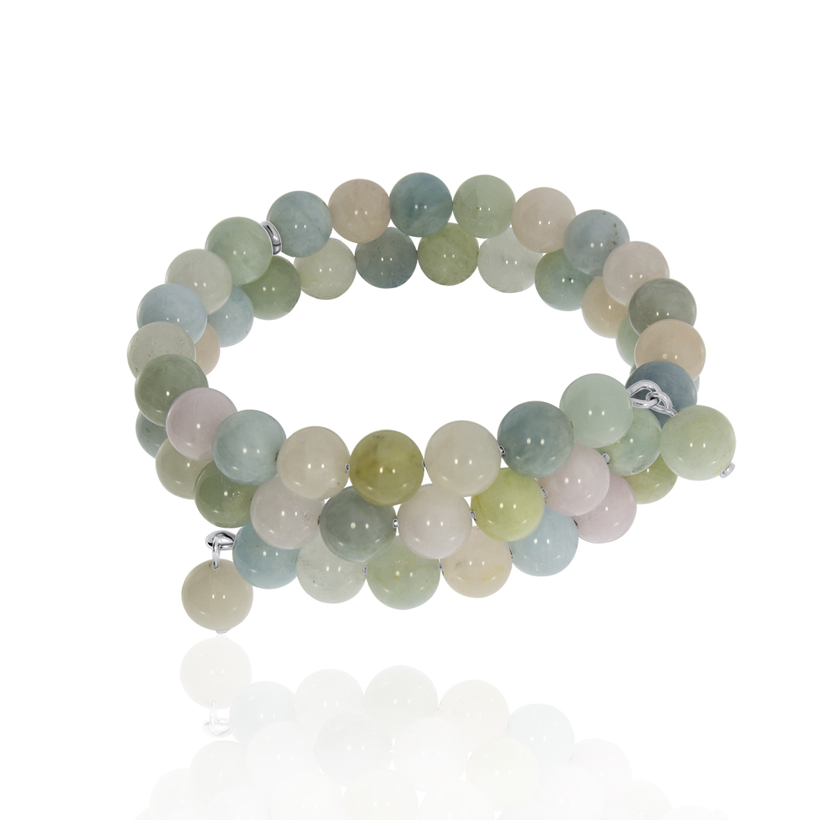 Браслет для женщин из серебра 925 пробы с проволока (с памятью)ом,бериллами, морганитами, аквамаринами артикул 4300879423 от компании KRASNOE