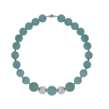 Браслет для женщин из серебра 925 пробы с жемчугами,амазонитами из коллекции Летний лед артикул 4340376103-19 от компании KRASNOE