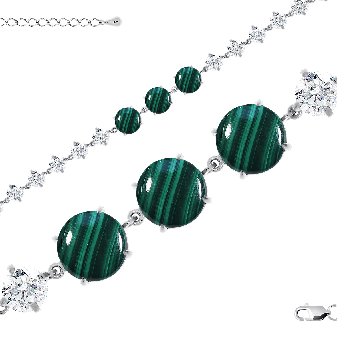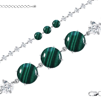 Браслет для женщин из серебра 925 пробы с малахитами,фианитами из коллекции Уральские самоцветы артикул 4340382508-19 от компании KRASNOE
