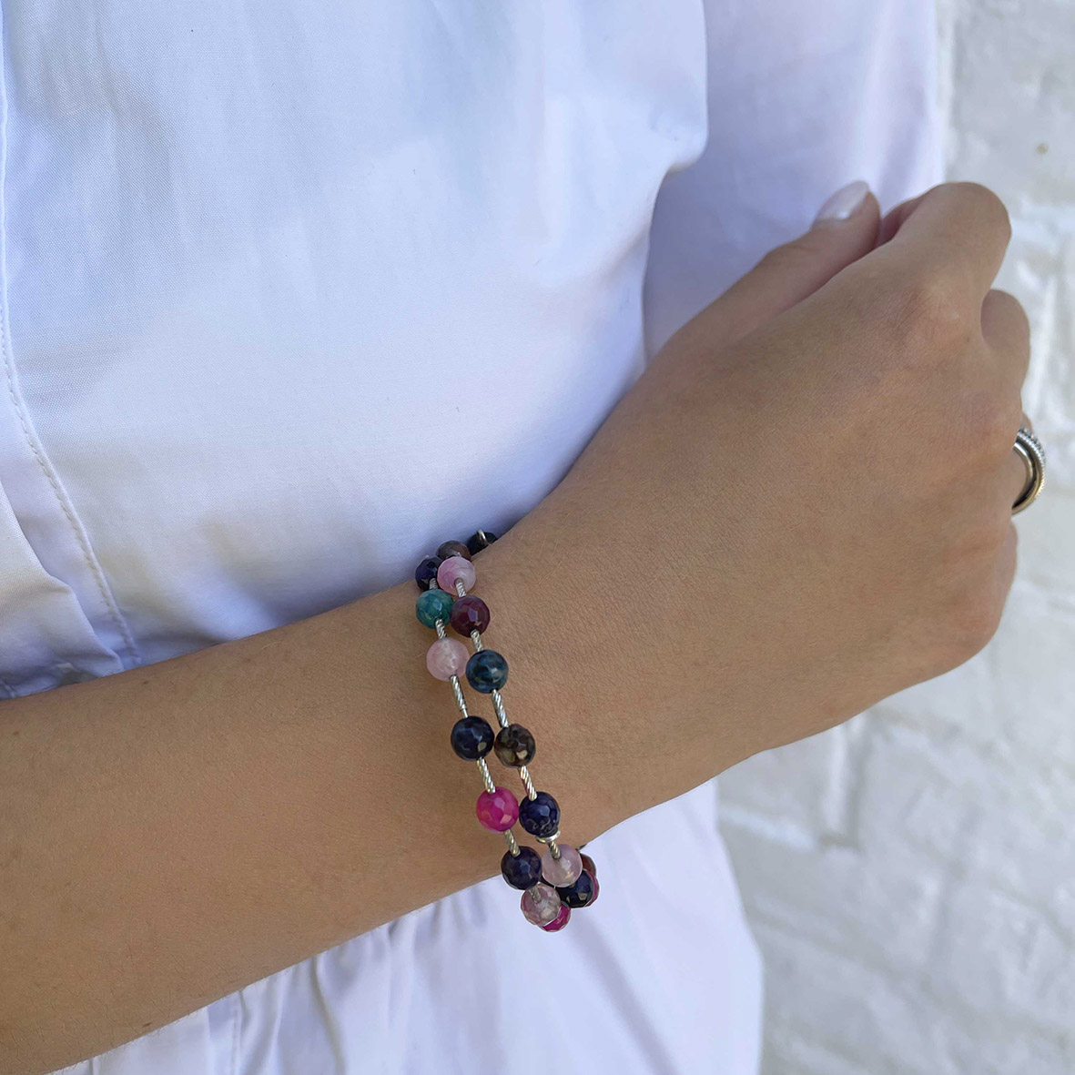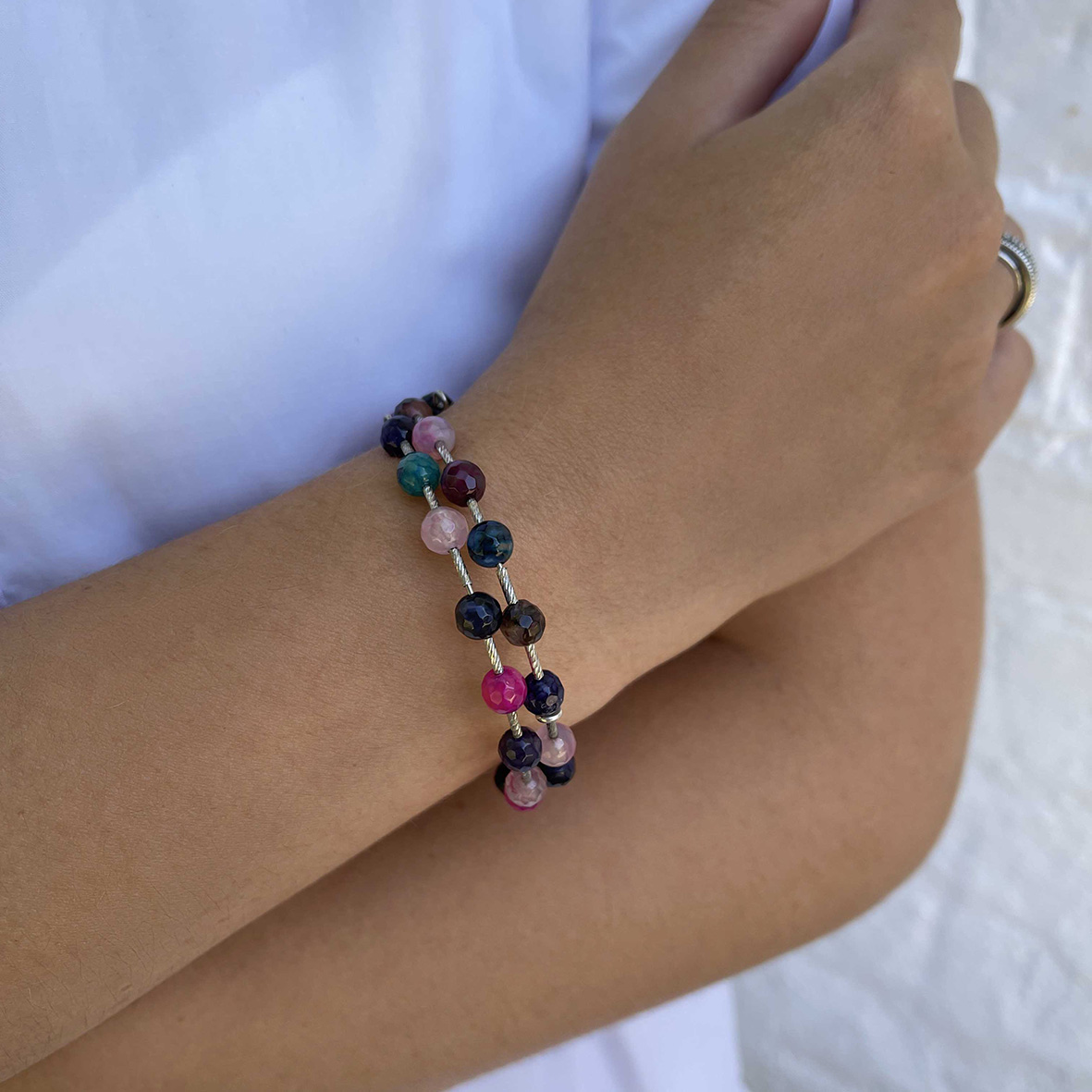 Браслет для женщин из серебра 925 пробы с проволока (с памятью)ом,агатами артикул 4340399424-2 от компании KRASNOE