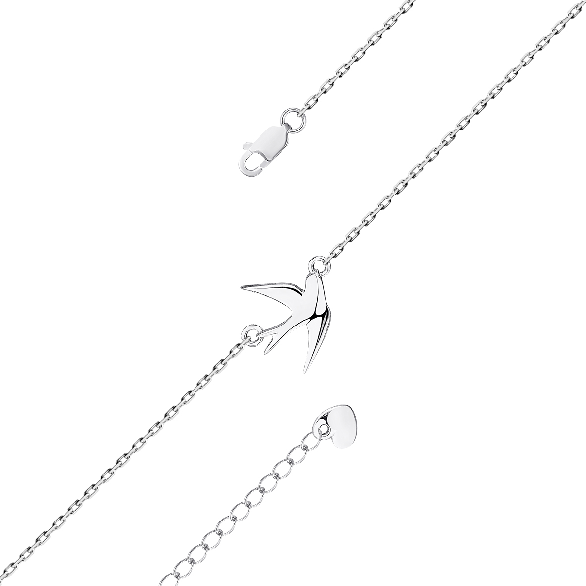 Серебряный браслет с подвеской в виде ласточки. Ласточка вестник добра, счастья, начала, надежды, положительного перехода, возрождения, утра, весны, восхода солнца. Легкий и комфортный браслет подчеркнет вашу элегантность и станет незаменимым аксессуаром в ваших образах. Браслет отличный вариант для любителей как минимализма, так и многослойности. KRASNOE- нежные и трендовые украшения из серебра 925 собственной разработки, дизайна и производства для красоты твоих будней! В коллекцию ювелирного бренда. KRASNOE входят кольца на фалангу, колье галстуки, джекеты, серьги-трансформеры.